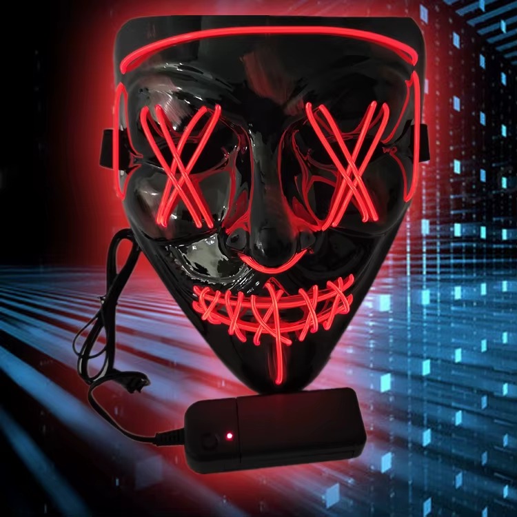 QAR 100Versatile Halloween LED masks, powered by 2*AA batteries, crafted from durable PVC material, perfect for parties, cosplay, and festive occasions.